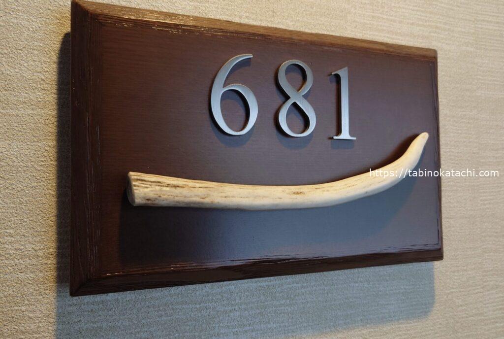 鹿の角のオブジェがルームナンバーに飾ってありました。