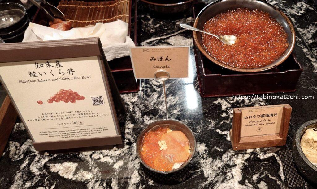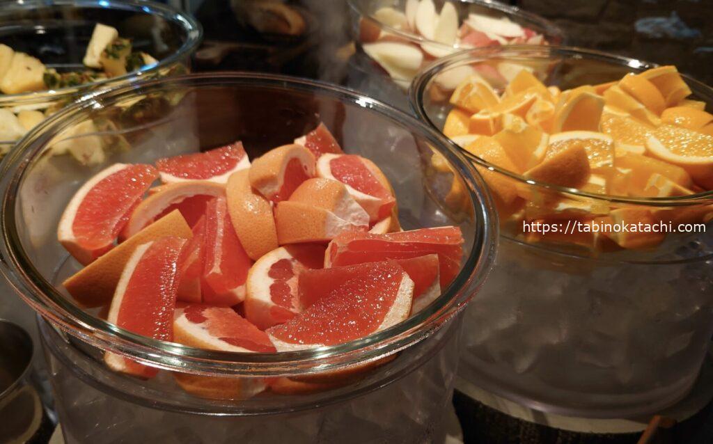 夜ご飯、朝ごはんは、どちらも西館2Fにあるダイニング、the LIFE TABLEでいただきました。形式としてはビュッフェなんですが、温かいお料理やデザートなどは、直接シェフにお願いして調理いただくことができるフリーオーダースタイルです。