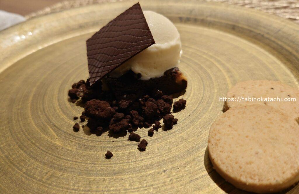 シェフのスペシャリテでいただいたショコラとアイスクリームが絶品でした。