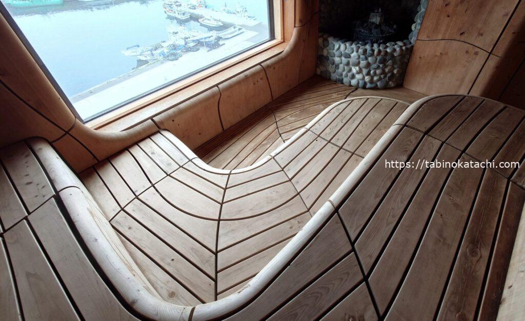 そして、景色だけでなく、私にとっては、サ室と水風呂の温度が絶妙でした。温度も88度とそこまで高くないのですが、サ室の温まり方がすごくて、8分前後でもう十分な感じです。そこからのキリッと引き締まる水風呂。あまみが出まくりで、潮風とカモメの鳴き声を聞きながら、至福のととのい時間を過ごさせていただきました。