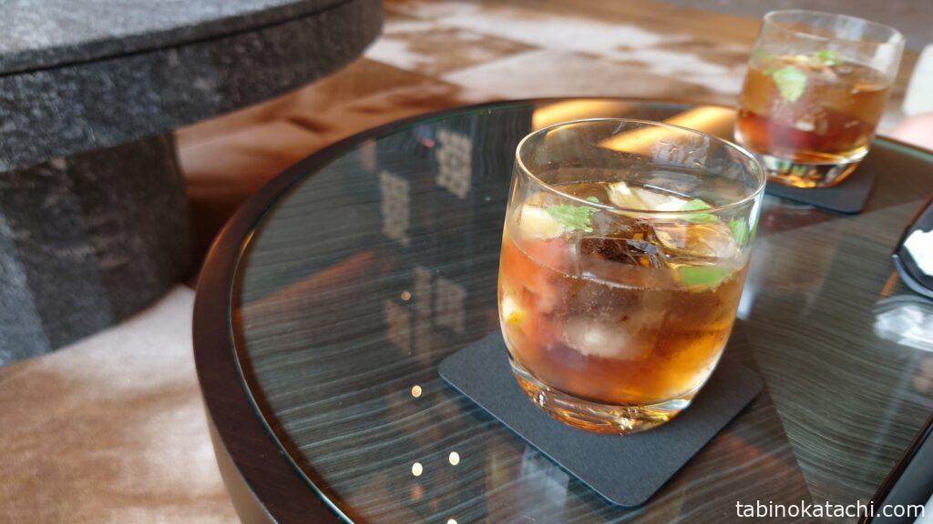 梅ベースのウェルカムドリンクをいただきながら、チェックインです。北海道の夏とはいえ、そこそこ暑さはあるので、さっぱりとしたドリンクが美味しい。落ち着いた空間で、ご案内いただき、いよいよお部屋へ向かいます。