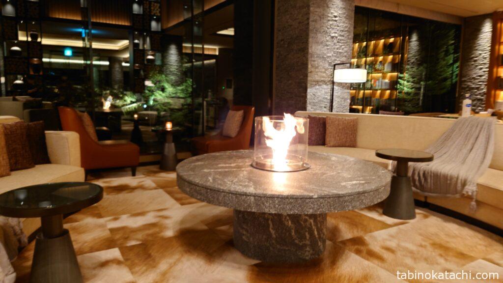 ちなみに、少し日が落ちてくると、ロビーには、キャンドルがおかれ、暖炉に火が灯されます。夏でも暖炉の日をつけていただけるのがステキです。炎の光というのは、本当にいやされますね。