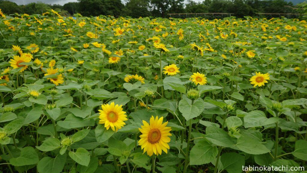 一方で、牧場の方も、羊蹄山がより近くに感じられ、本当に素敵なところです。ミルク工房やレストランもありますし、夏にはひまわり畑も!こちらは帰るときに立ち寄ったときの様子ですが、こんなに沢山のひまわりを見たのは初めてでした。天気がよかったら、さらに素敵だったのに!