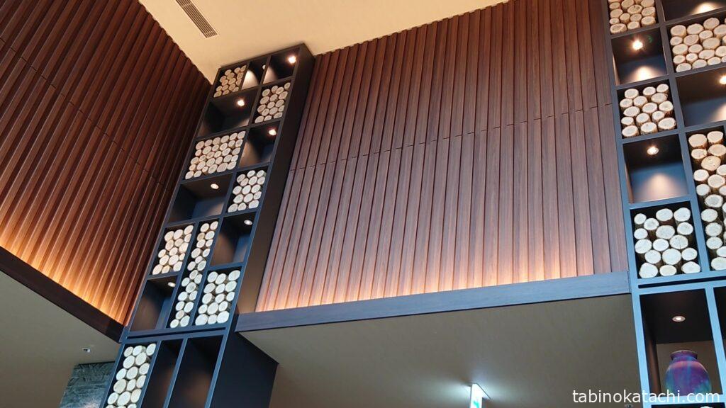 ホテルロビーがとても素敵なんです!!まるで、ヨーロッパの山岳リゾートに来たような感じ。大理石や御影石、杉の木などが随所に使われていて、暖かなで、とっても大人な雰囲気。こちらでチェックインをおこないます。