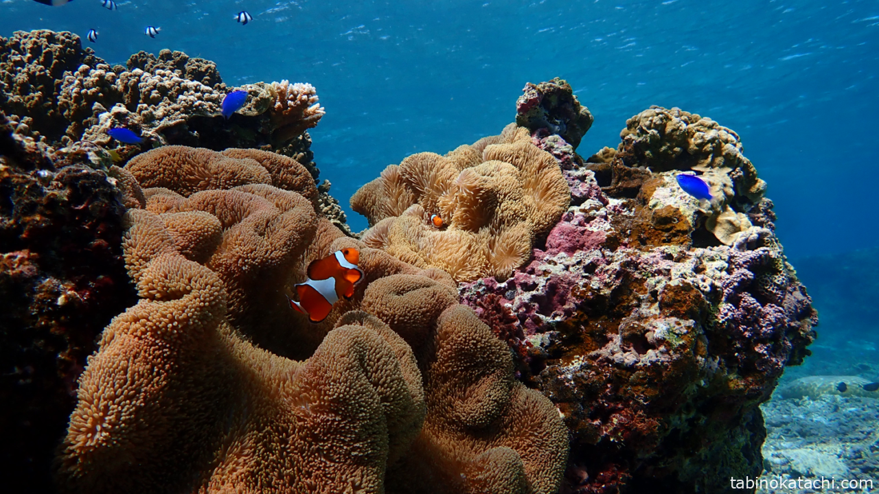 息子が小さい頃から通っていて、シュノーケリングの練習をしたビーチでもあるので、我が家にとっては、思い出深い場所です。それほど深さはなく、流れもないので、潜って珊瑚やお魚の写真をとったりできます。干潮時はかなり浅くなるので、潮位(干潮・満潮)の時間を考慮してエントリーする必要がありますが、比較的狭いエリアで珊瑚やお魚を楽しめる楽しい場所です。砂浜のほうからエントリーすると、かなり珊瑚エリアには距離があるので、シュノーケリングするには岩場のほうからのエントリーするほうがベターです。