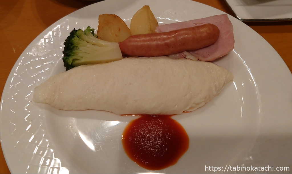 北海道ホテルの朝食は、ホテル内の中庭に面したバード・ウォッチ・カフェでいただきます。メニューとしては、3種類の中から選べるスタイルです。1泊だけだったので、かなり迷う・・・。今回は、王道の洋食にしました。白い卵のオムレツを食べてみたかったので!