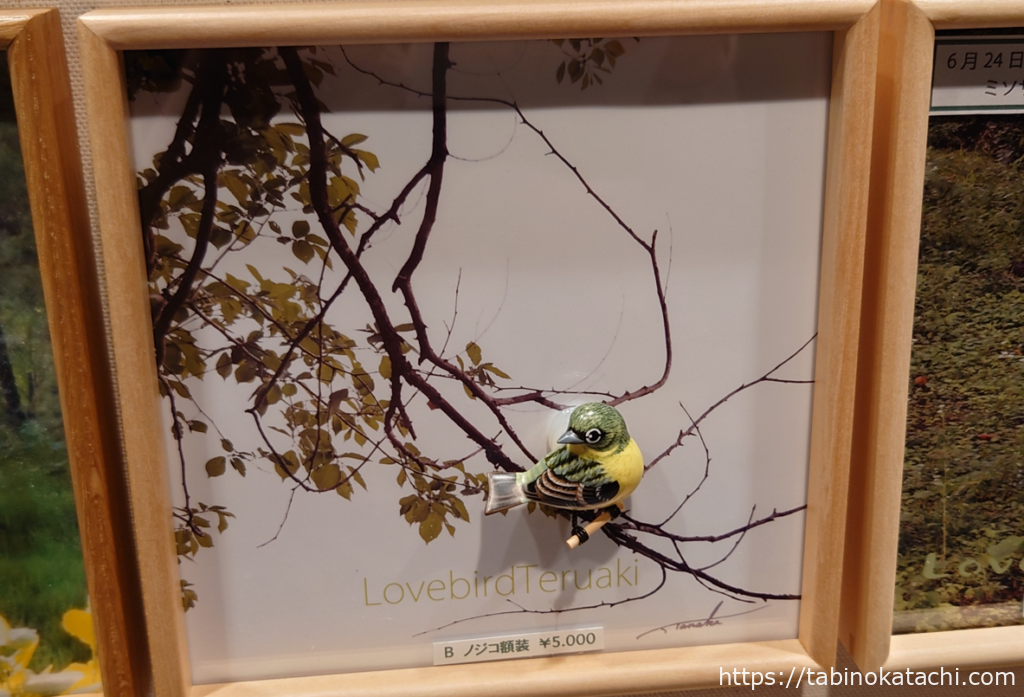 額縁とセットで、購入も可能なようでした  羽の細部まで丁寧にえがかれていてスゴイ