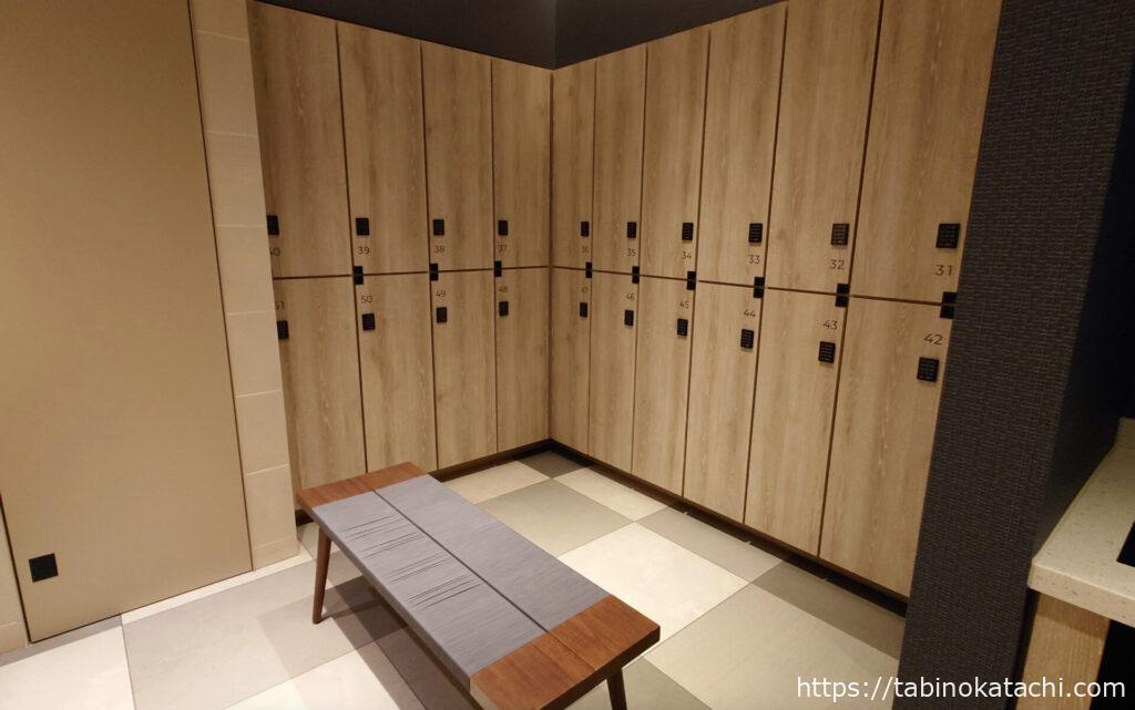 ロッカールームは、コンパクトで、結構狭いです。女性ロッカーは20個ほど用意がありましたが、実際にここで同時に着替えするには、せいぜい2−3人が限界でしょうか。ホテルのお部屋で水着に着替えておいて、ロッカーには着替えをおいておく・・・みたいな使い方が現実的かなとおもいます。