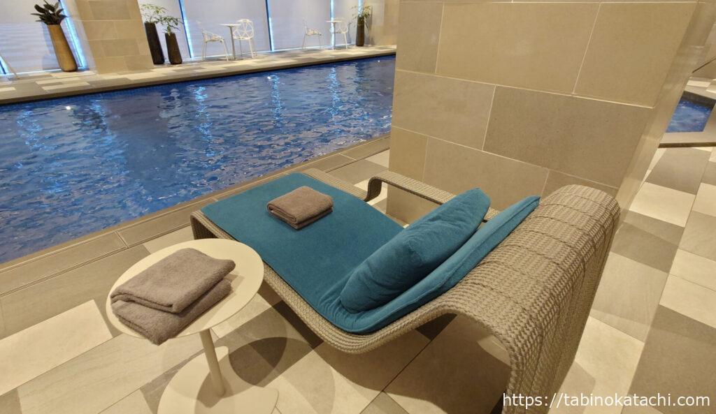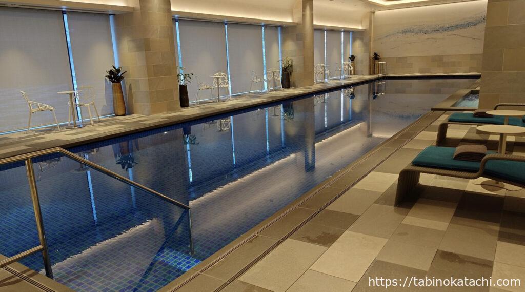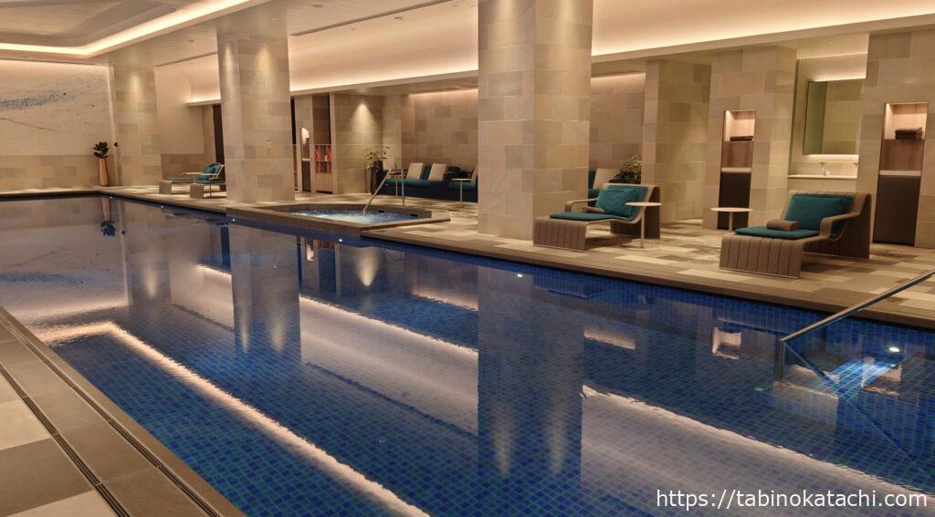 同じ、ウェエルネス棟にあるプールも一緒にご紹介します。プールも人数制限をされていたので事前に予約が必要でした。私たちは、朝7:00からの早朝プールを申し込みました。プール→温泉(サウナ)→朝ごはんという、なんとも健康的なスケジュールを狙っています。旅行中って、普段よりも早起きになりますよね(笑)