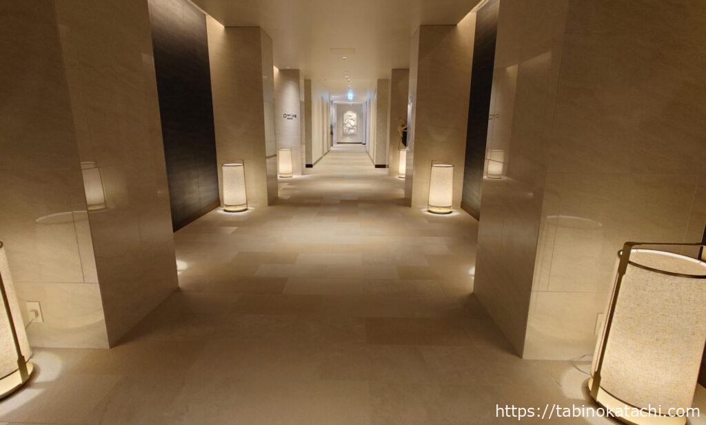 ウェルネス棟にはいると、ホテル棟とはまたちがった雰囲気。やわらかく、あたたかい照明で、なんだか癒されます。