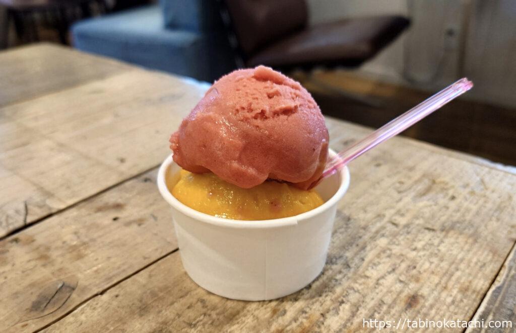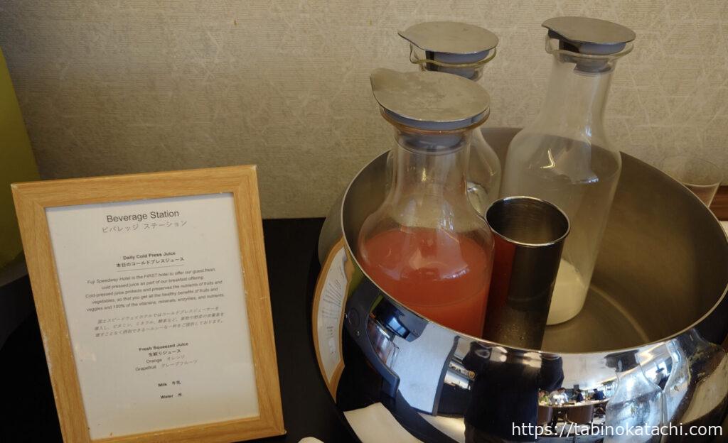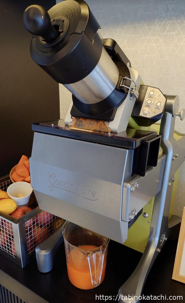 なかでも一番人気だったのは生搾りジュースでしょうか。コールドプレスジューサーが完備されていて、この日は、グレープフルーツとオレンジの2種類の生搾りジュースが提供されていました。搾りたてのジュースが美味しかったです。ごちそうさまでした。