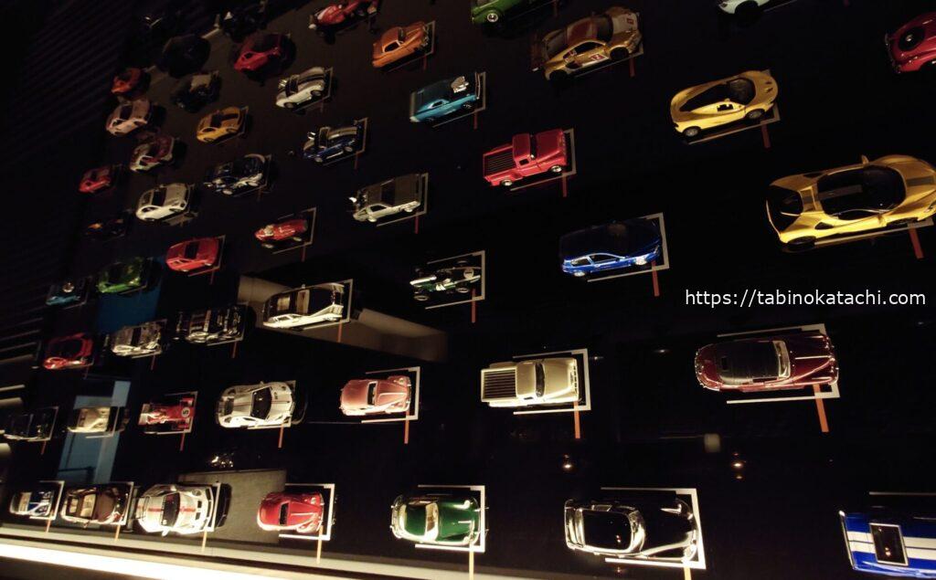 間接照明で、しっとりとした空間に、壁のミニカーがアクセント。