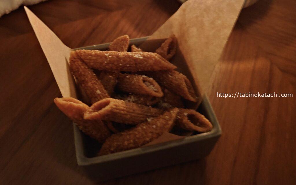 いただくカクテルも、付け合わせにいただいたスナックも美味しい。