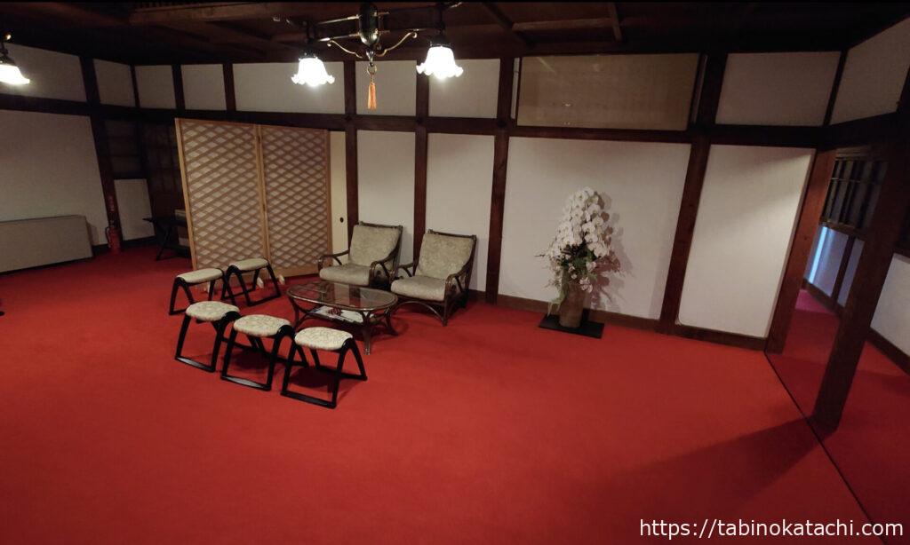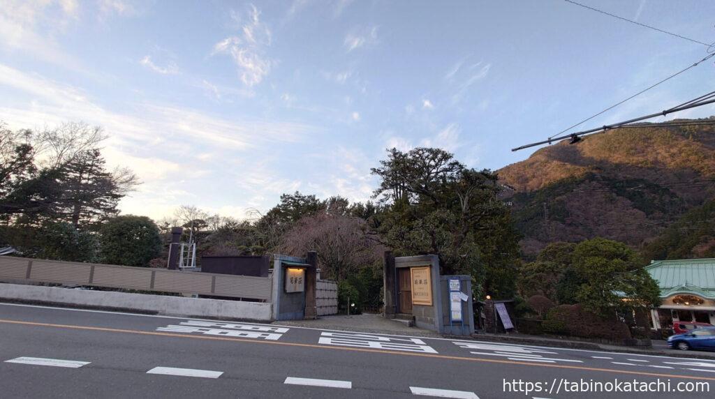 菊華荘は、富士屋ホテルの本館をでて、道路を渡った向かい側にあります。横断歩道があるのですが、結構、交通量が多く道幅も狭いので、気をつけてください。伺った時は、まだ空が明るかったです。