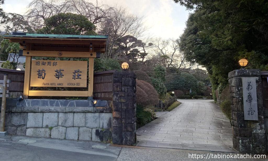 皇室の旧宮ノ下御用邸だった菊華荘。入り口からなんだか格式高い・・・。庭園もあり、もう少し暖かい季節になったら、緑や草花が美しいだろうなぁと思いました。