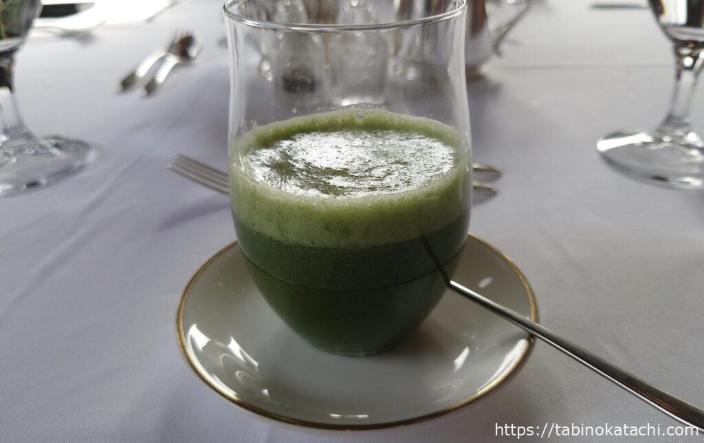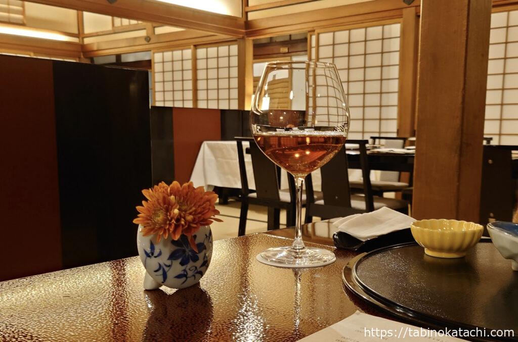 息子は、富士屋ホテルノンアルコールペアリングを選択。1688 グランロゼ、ロイヤルブルーティー 玉露ほうじ茶 香焙、ル プティ ベレ ピノノワール の3種がセットでした。最近のノンアルコールワインの品質ってすごいですよね。