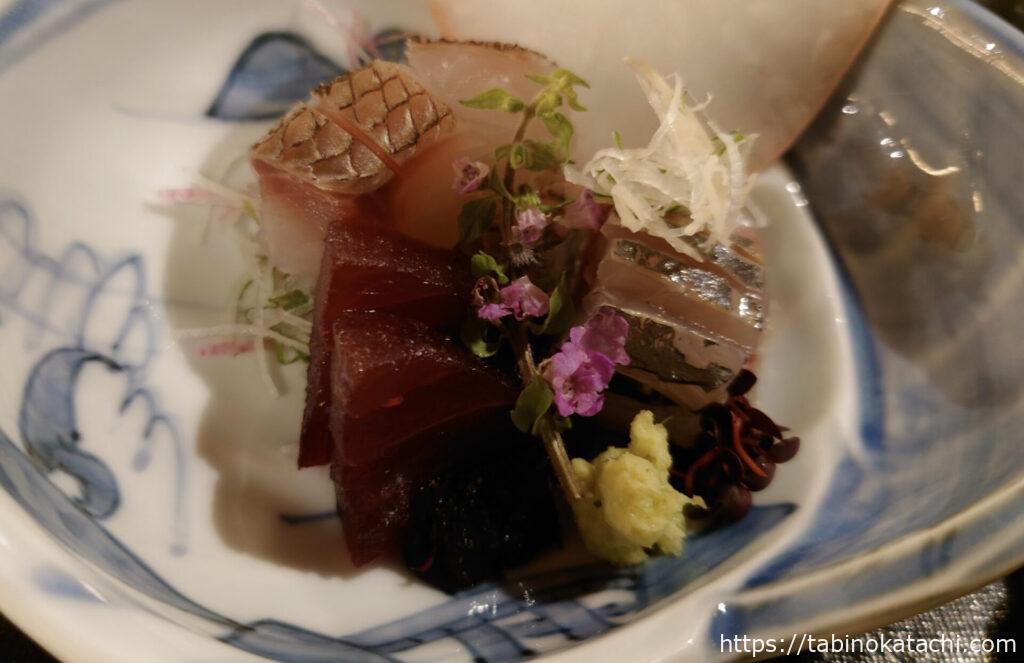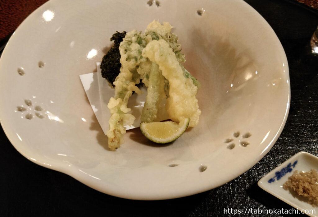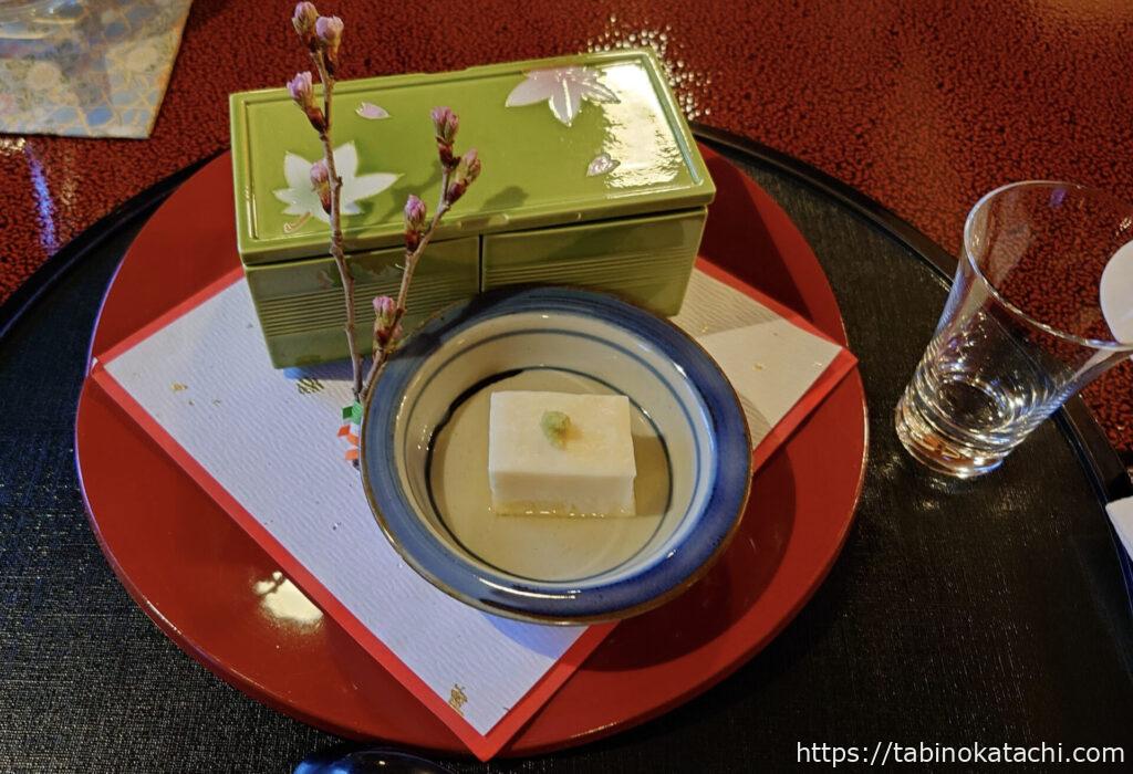 今回は、和食ということで、ドリンクには、日本酒、上川大雪の純米吟醸 吟風をいただきました。上川大雪は、北海道の酒造さんで、昨年、帯広に行った際に美味しかったので、迷いなくチョイス。最近、ご近所で日本酒を出していただく和食屋さんを発見し、色々教えていただいているのですが、日本酒は、酒造さんや季節、お米の出来、飲み方などによって、本当にいろいろな味わいがあって、奥深いなぁと感じています。