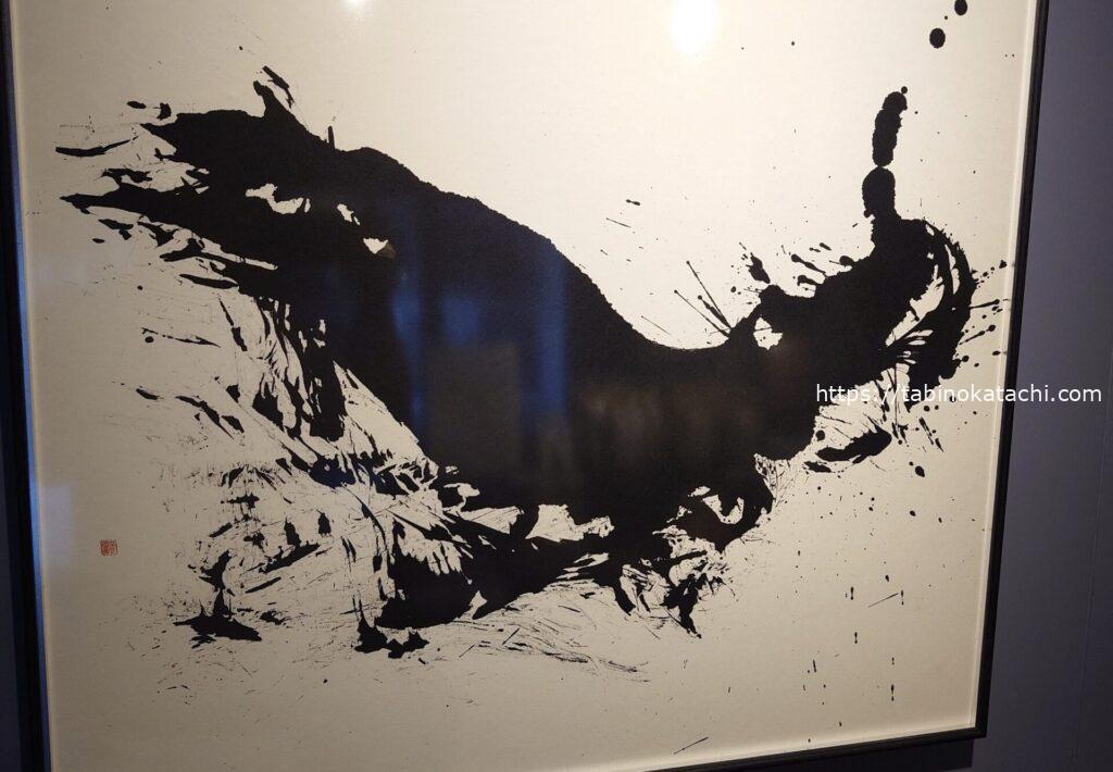 お酒のラベルの原画もかざられていました タイトル「馬」十勝の逞しい農耕馬を表現