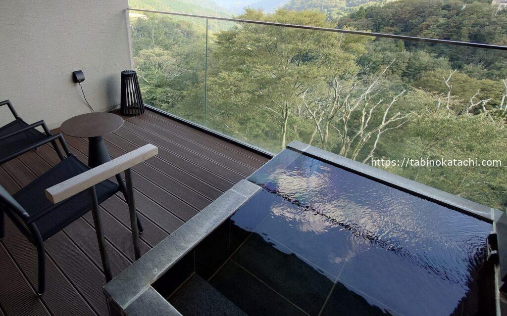 蒼海は、露天風呂の先に水盤があり、明るいイメージ。