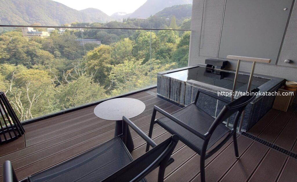 露天風呂とは区切られた、スペースに、インフィニティチェアがあります。