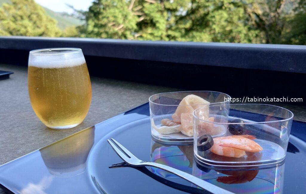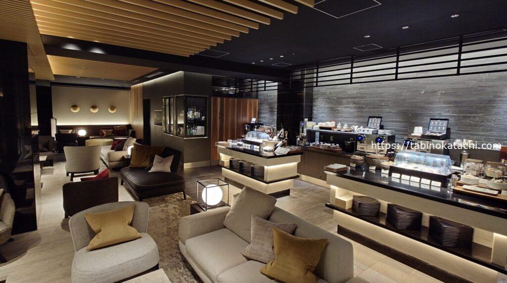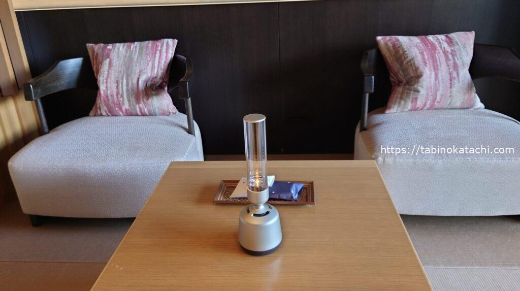 温泉につかったあと、ディナーの前など、ちょこっと立ち寄れるラウンジは素敵。