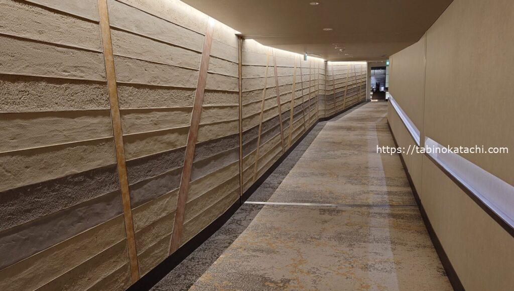 トンネルのような廊下を通って宿泊棟に向かいます。