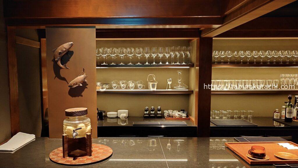時折スタッフさんが来て、使用済みのグラス類を下げてくれたり、飲み物や茶菓子を補充してくれたりする。カウンターの中にはお酒の瓶がいくつか置いてあるので、お願いしたら何か作ってくれるのかも。