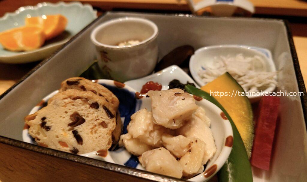 手長エビのお味噌が添えられており、和食の美味しさをあらためて感じられるお献立でした。地産地消も意識されているのか、伊豆の食材もふんだんに利用されており、おちあいろうに宿泊した良さを感じられました。