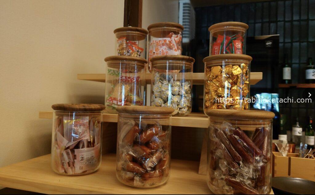 また、アイスとヨーグルトもあり、酢昆布やソースカツなどの駄菓子やジャーキーやスモークチーズなどのおツマミまで揃っていて、セルフサービスで頂くことができる。食べ放題だ。