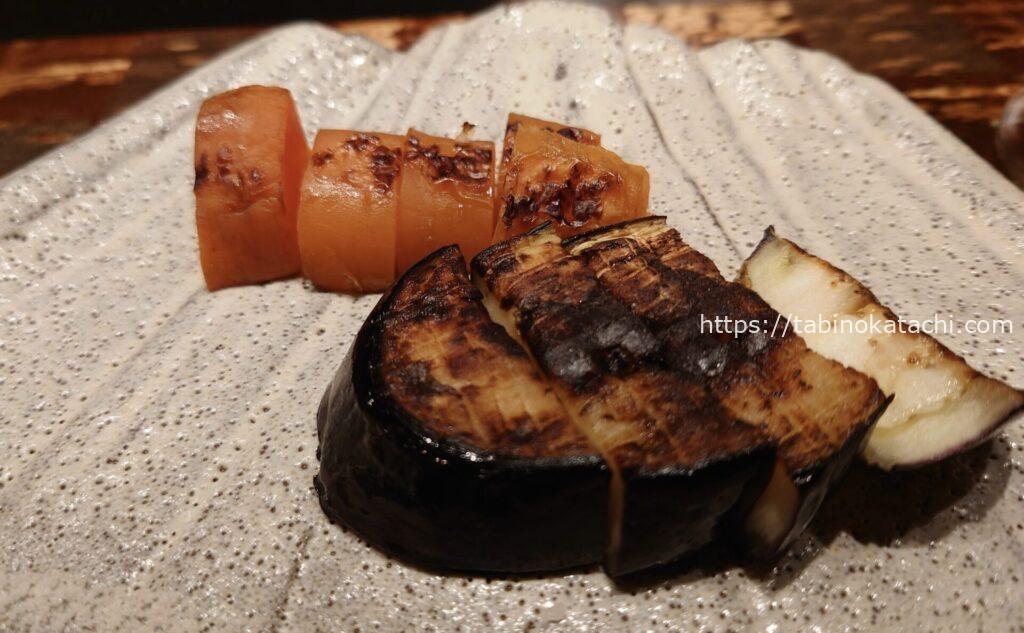 お醤油の焦げるいい香りがただよってきたかとおもうと、お次はヤキスキ。三島のブランド卵である、「日の出卵」の黄身だけを、贅沢に纏わせていただきます。
