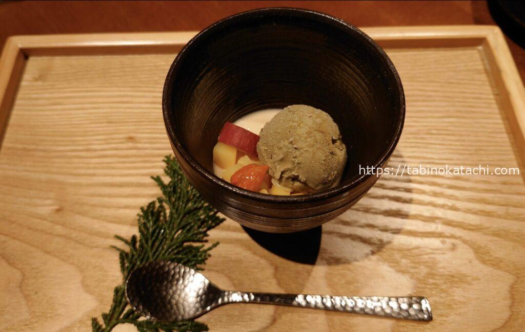 デザートは、きなこクリームとほうじ茶のアイス。ほうじ茶アイス好き。