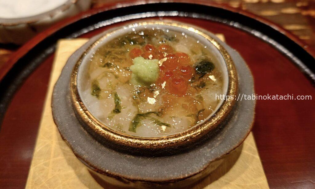手長エビのお味噌が添えられており、和食の美味しさをあらためて感じられるお献立でした。地産地消も意識されているのか、伊豆の食材もふんだんに利用されており、おちあいろうに宿泊した良さを感じられました。