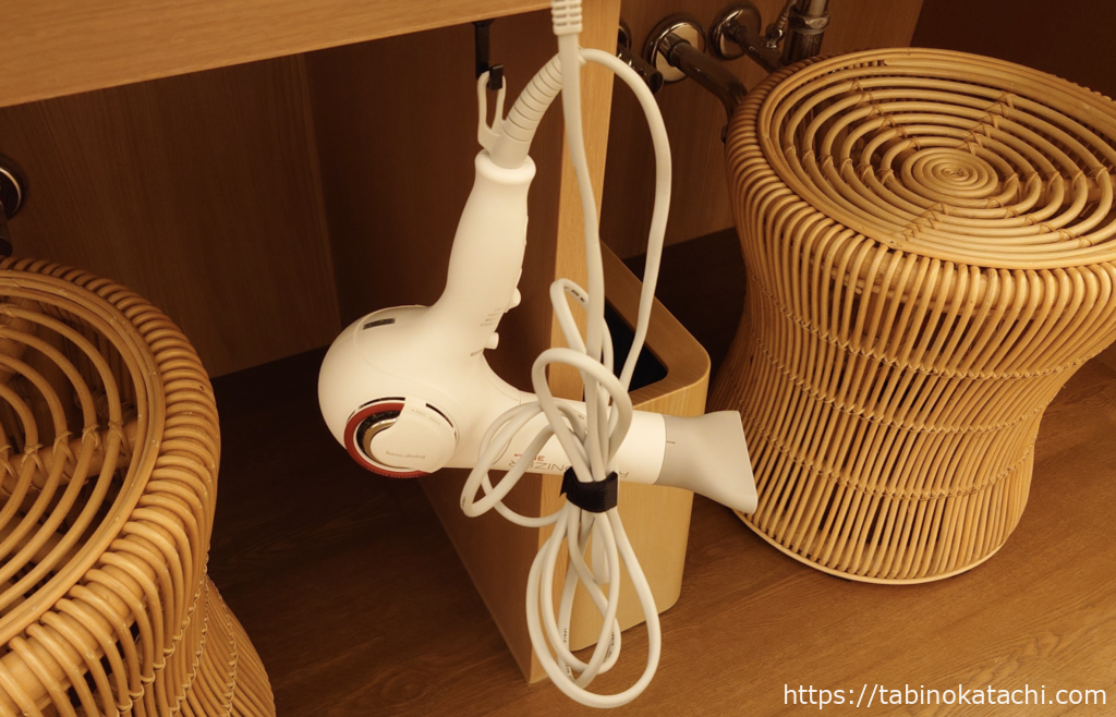 木を基調としたやわからな感じの脱衣所。おいてあるアメニティやドライヤーなどは共通です。