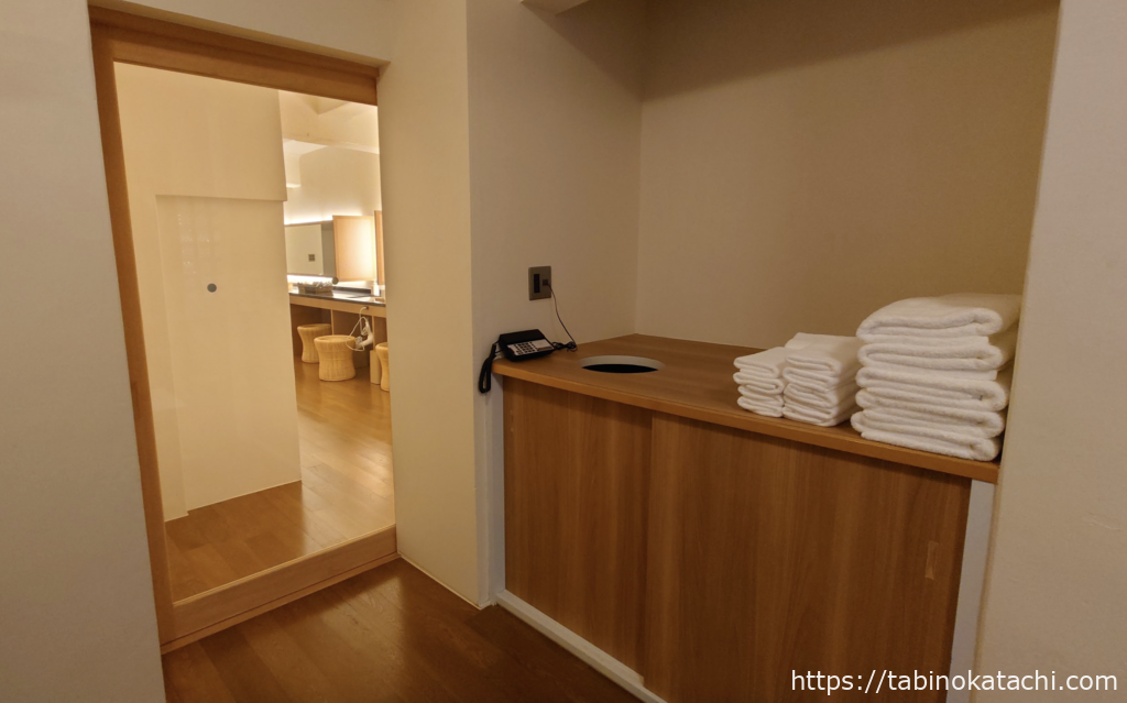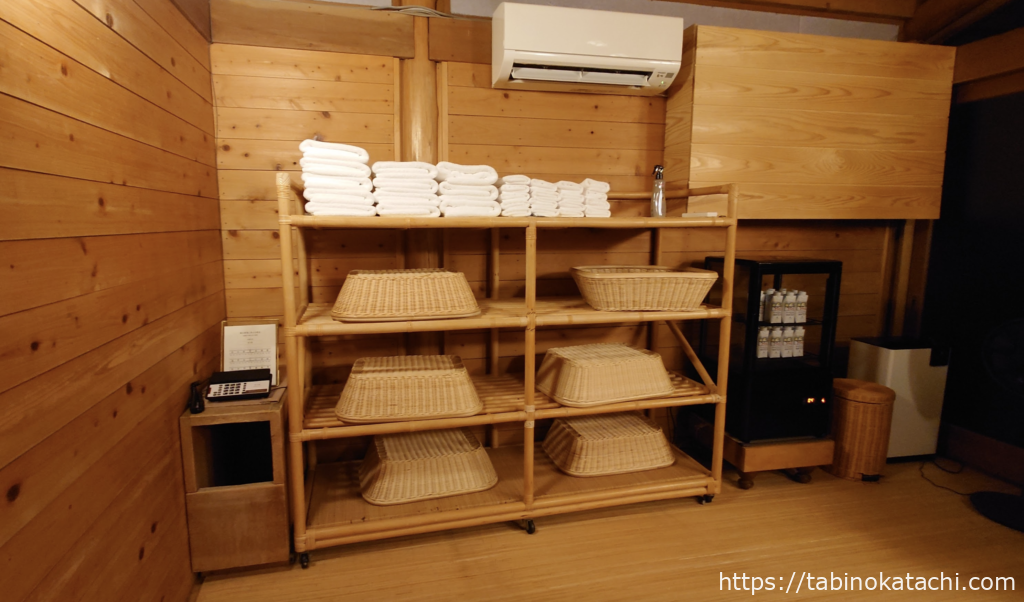 寒さ対策のためか、脱衣所は、お化粧台の奥にあります。タオルもふんだんに置いてあり、いつ来ても、ととのっていたので、まめにスタッフさんがチェックされているのではと思われます。