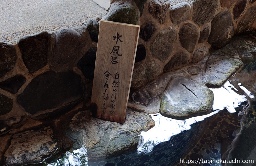 水風呂はサウナ室からでて階段をおりたところ(サ室の下)です。なかなかユニーク。川のお水が含まれているということで、かなりの冷たさ!キンキンに冷えています。私は10秒つかっていられれば・・・手先がもう冷たくなってという温度でした。過去いち冷たかったです。