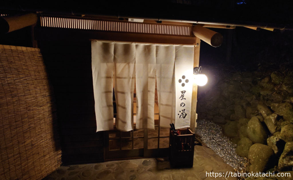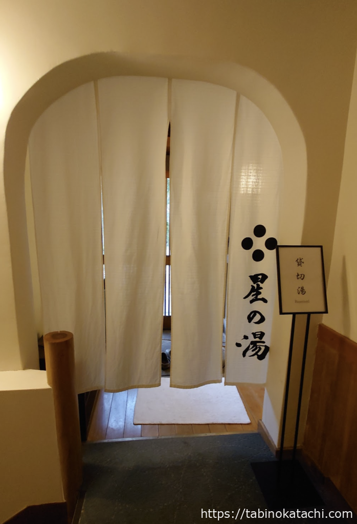 おちあいろうには宿泊者であれば無料で利用できる貸切風呂「星の湯」があります。チェックインのときに、利用希望があれば、予約をとっていただくことができますし、連泊であれば、用意されているLINEアプリから自分で予約することもできました。