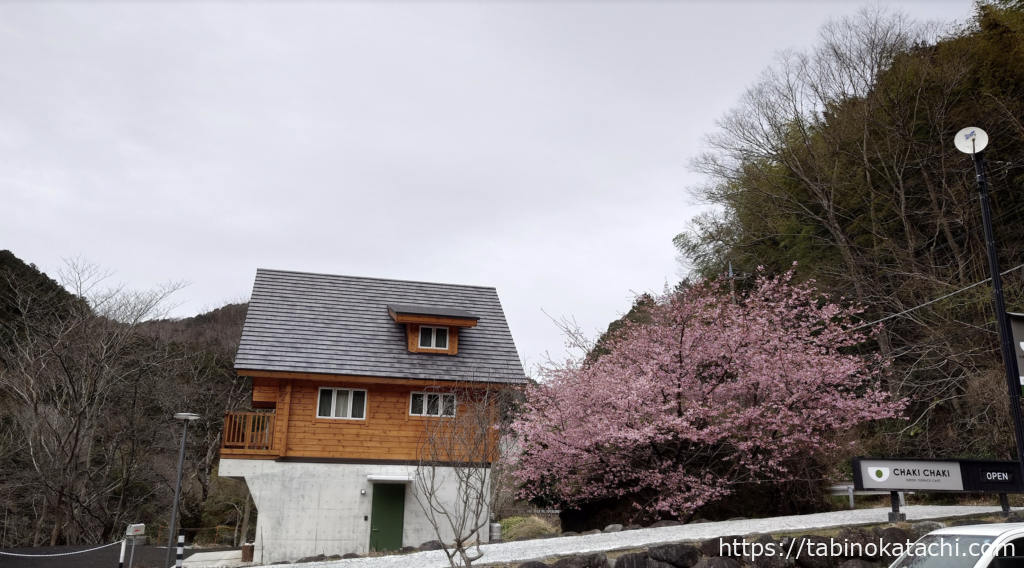 無事に到着。お店の周囲には、河津桜もあって満開。