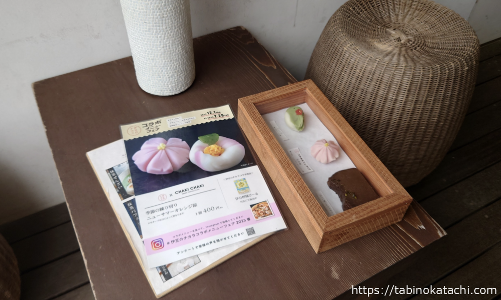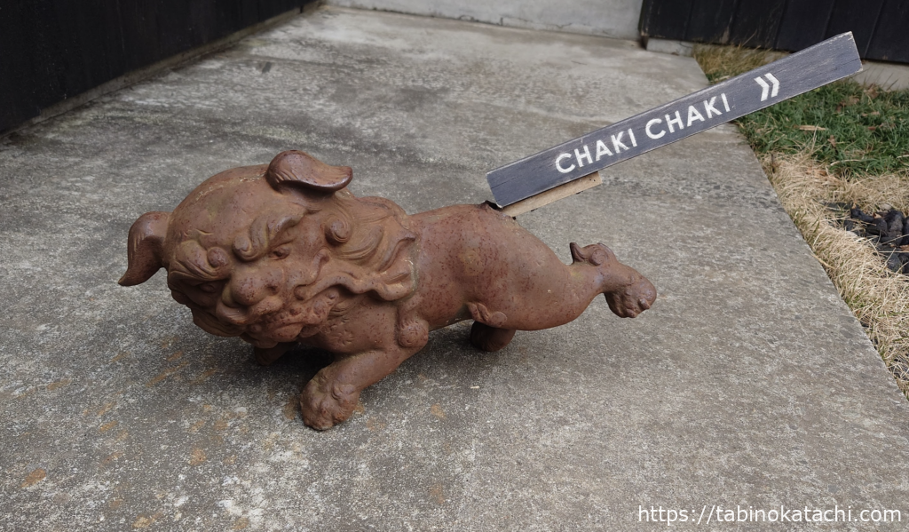 向かった先は、自転車で10分ほどの距離にある、CHAKI CHAKIさん。手作りの和菓子やパフェがいただけるカフェです。お宿から距離的にはそれほどないのですが、結構、車の交通量が多いのと、その割に、歩道が狭い箇所が多いので、自転車で向かう場合は注意が必要でした。