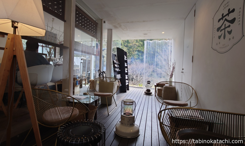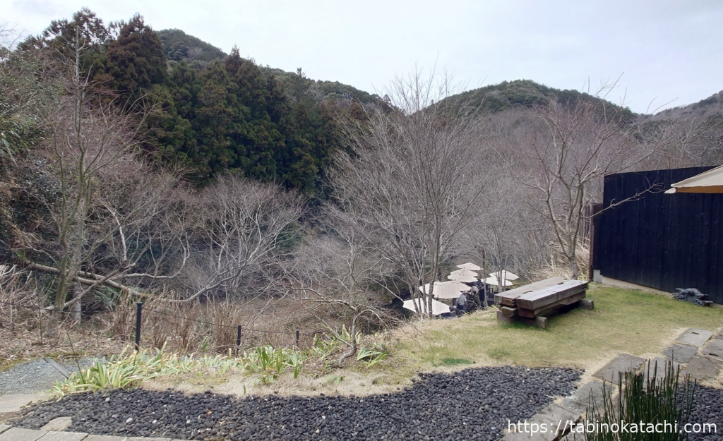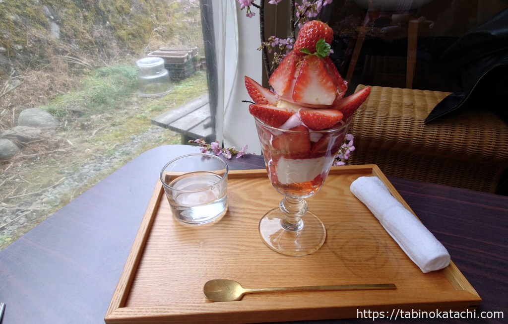 お待ちの人数が掲示されている看板があったので、トップシーズンはかなり混み合うのかしら??川床テラスという、川のほとりでスイーツをいただけるお席もあり、暖かくなると、人気だろうなぁ!とおもいました。私たちが訪れたときも、まだ肌寒い時期ではありましたが、テラスにストーブや膝掛けなどがおかれていて、川床テラスでお茶を楽しんでいらしゃる方が何組もいらっっしゃいました。