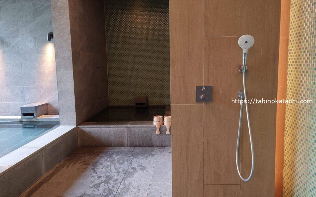 サウナをでて、すぐ横にシャワースペースがあるので、水風呂への動線も完璧。