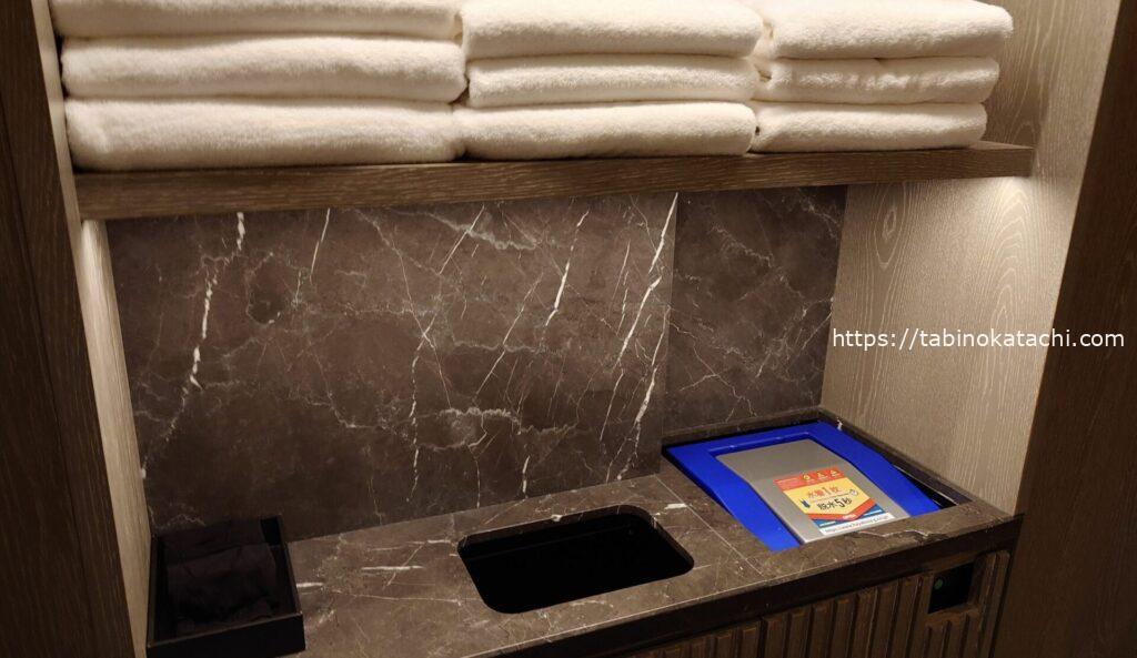 脱衣所には、ふかふかのタオルが、たっぷりと用意されています。