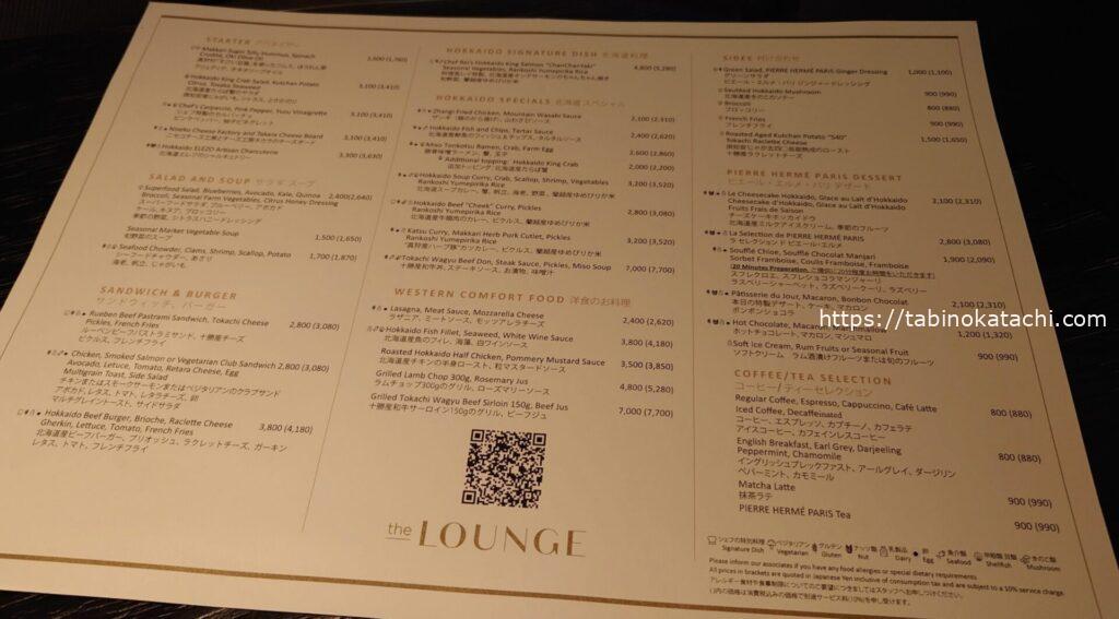 ザ・ラウンジのメニュー