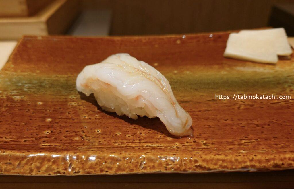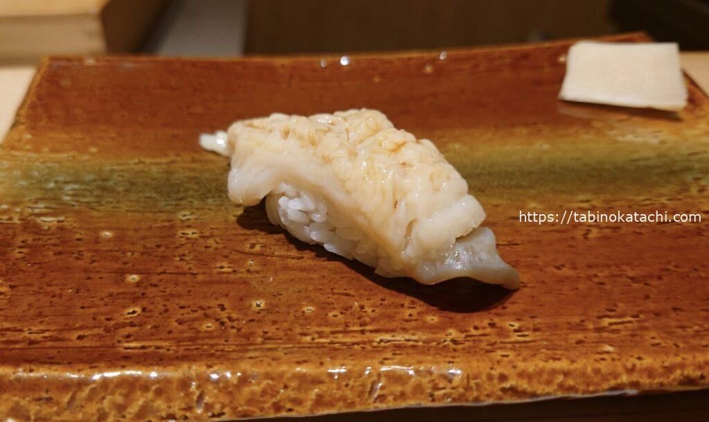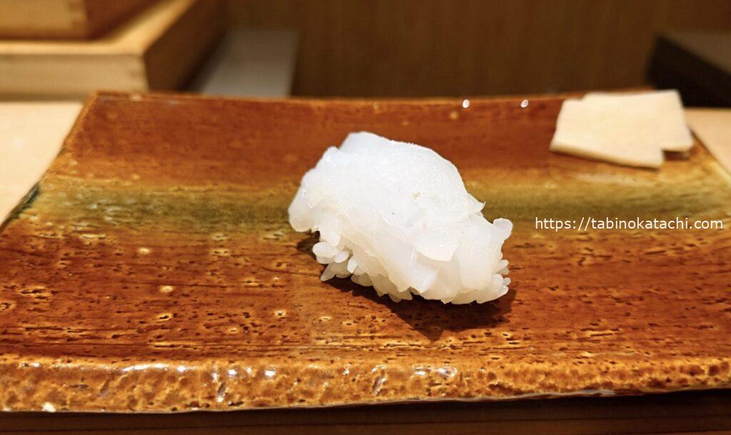 握りは、白身の王様アラからスタート。アオリイカ、ボタンエビ、ホッキ貝と続きます。