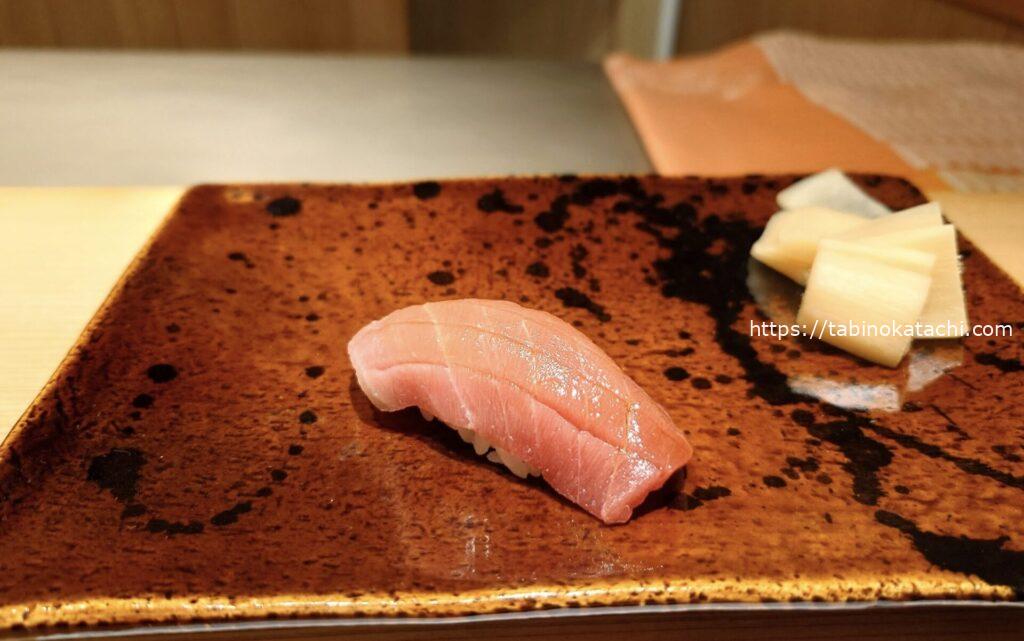 私、かなりのガリ好きなんです。そして、こちらのガリが美味しすぎて、ガリだけでお酒が進む状況。ガリが好きなお寿司やさんって、シャリのお酢加減も、好みなんですよね。思い返せば、好きなお寿司屋さんは、みんな、とにかくお酢加減が好みすぎる。