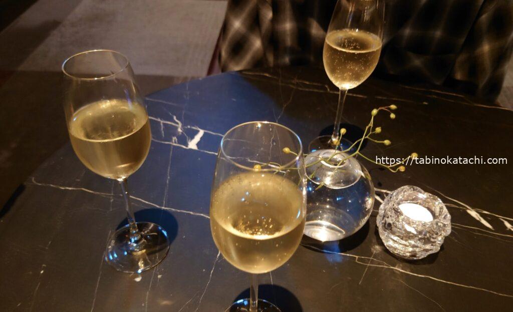 先ほど、バーで一杯+サービスのシャンパンをいただいたのですが、こちらでも白ワイン。美味しいものには、美味しいお酒。