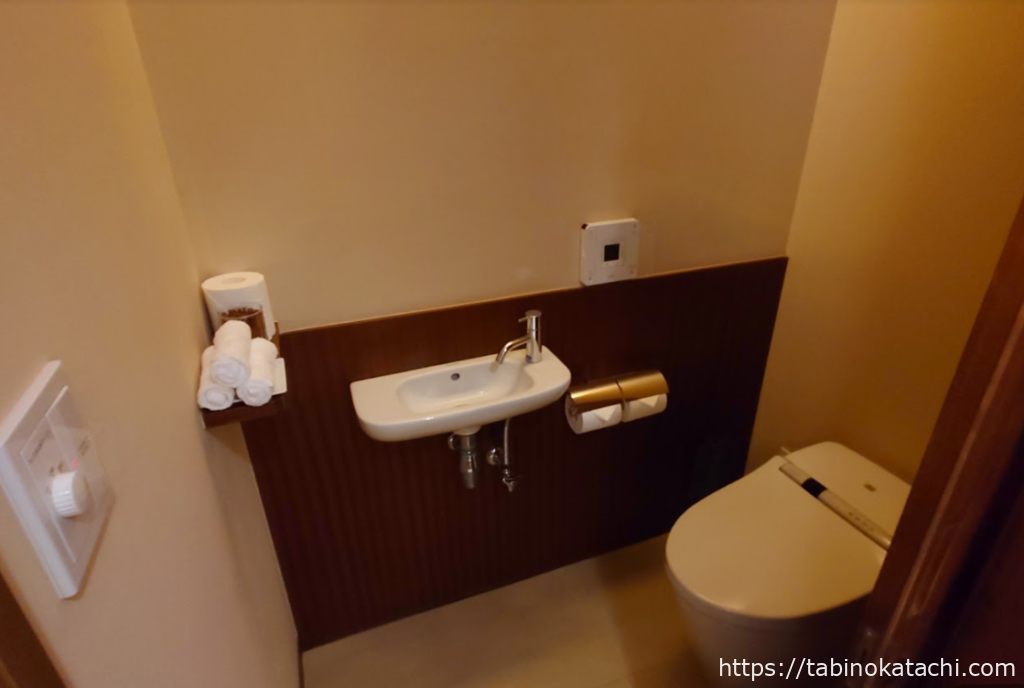 お手洗いは、バスルームとは反対側の、お部屋の入口にあります。