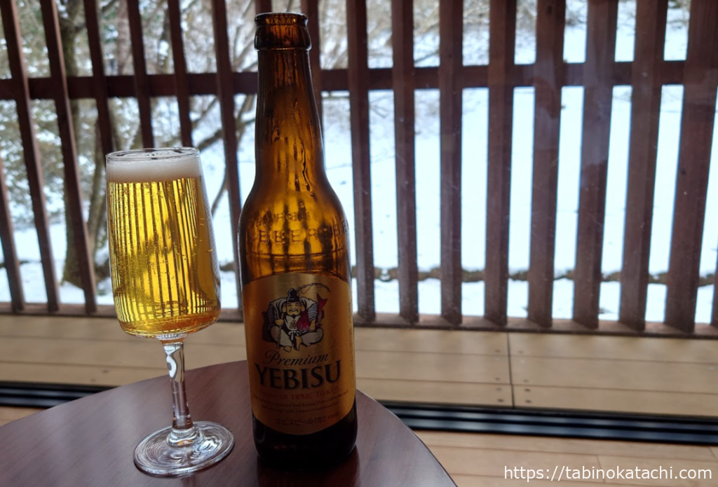 靴を脱いではいるタイプなので、よりリラックスすることができます。また、床暖も設置されているので、冬でも、とても暖かです。お部屋の外からは、雪がまだ積もっていましたので、雪景色をみながら、まったりとすることができました。