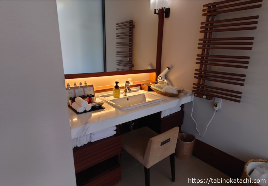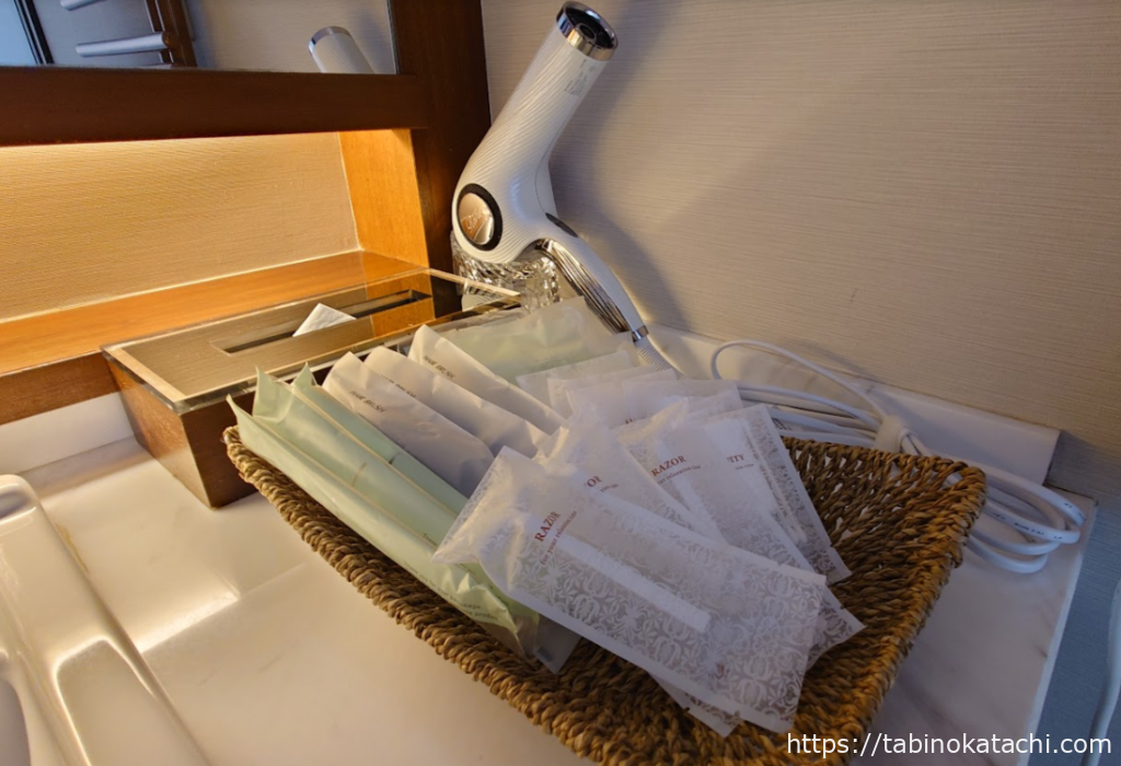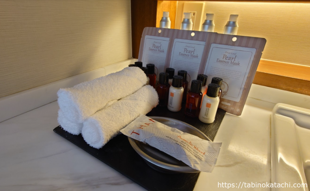 バスルームには、タオルウォーマーが設置されていて、こちらも一部が床暖になっています。また、アメニティはタイのスキンケアブランドのTANN、ドライヤーはRefaでした。Refaのドライヤーは見た目が大きいのですが持ってみるととても軽くて、驚きました。髪の毛を乾かすのも早いし。ドライヤーとしては、4万前後となかなかの価格なので、簡単には手が出ませんが・・・。