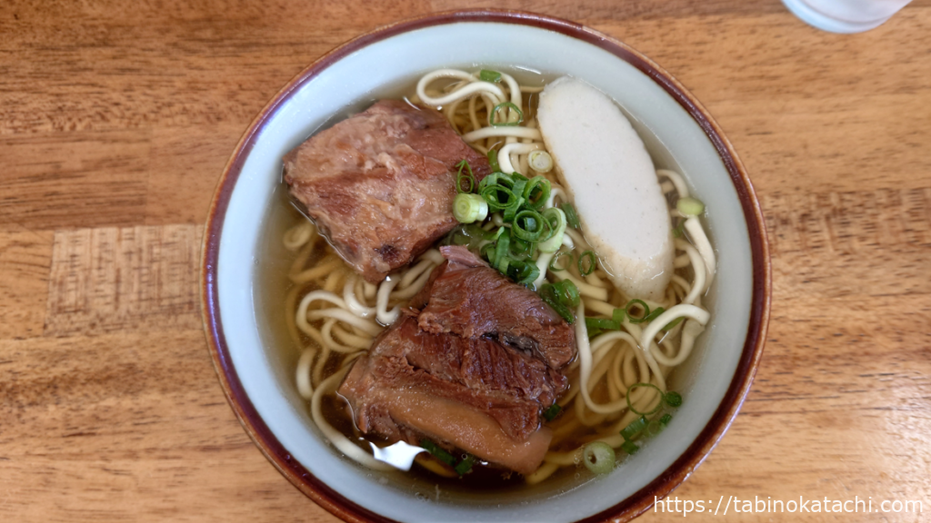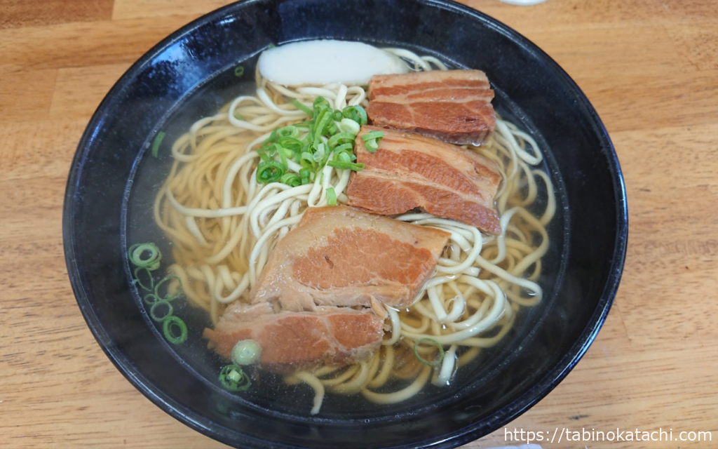 鰹だしのスープと、ソーキや三枚肉が絶妙にマッチしていて大好きな味です。大きさも、大盛、大、小と選べるので、お腹にあわせてチョイスできます。小といっても、そこそこボリュームあります。また、ジューシーもあるので、そばとジューシーの組み合わせも可能!