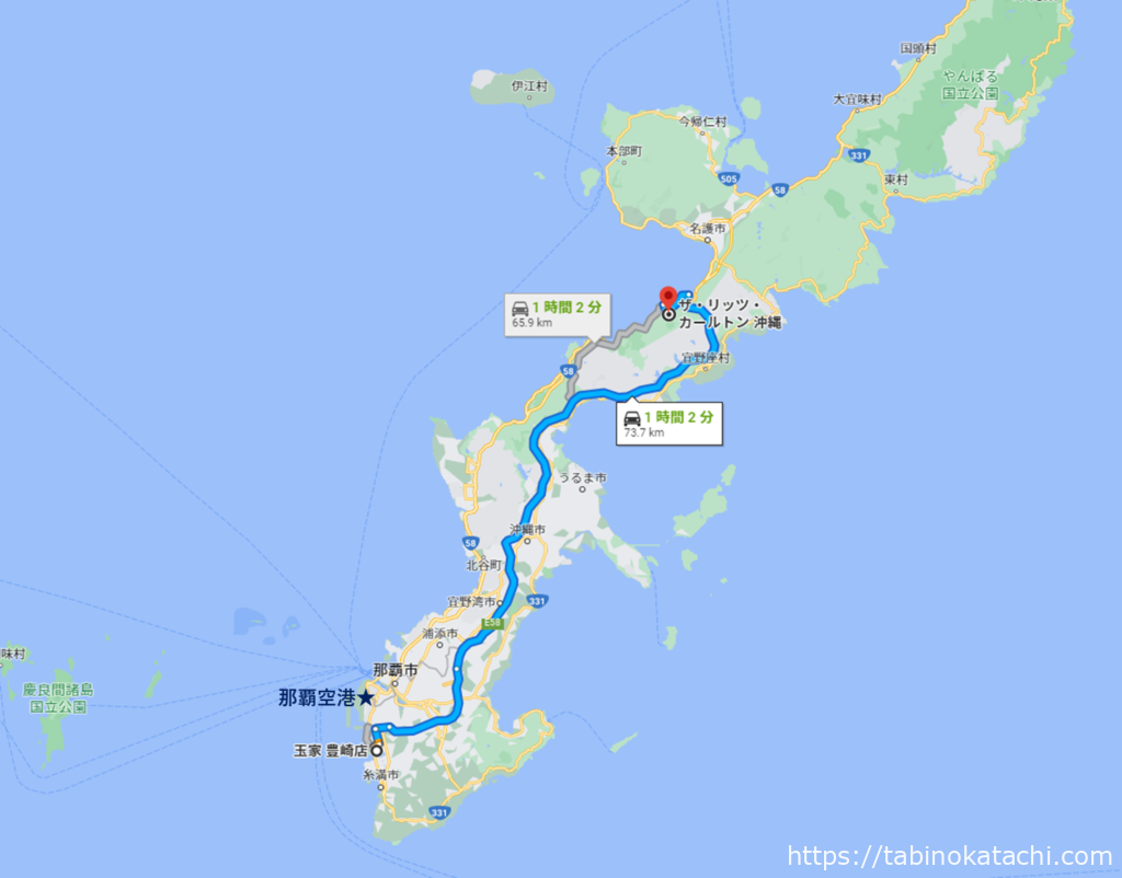 ホテルとは逆方向になりますが、お気に入りの沖縄そば屋さん 玉家さんでランチをしてから、ホテルに向かいます。玉家さんは、空港から車で15分ほどの距離です。近くに、アウトレットモールのあしびなーもあるので、帰路につく途中でお買い物&ランチというのにも便利です。